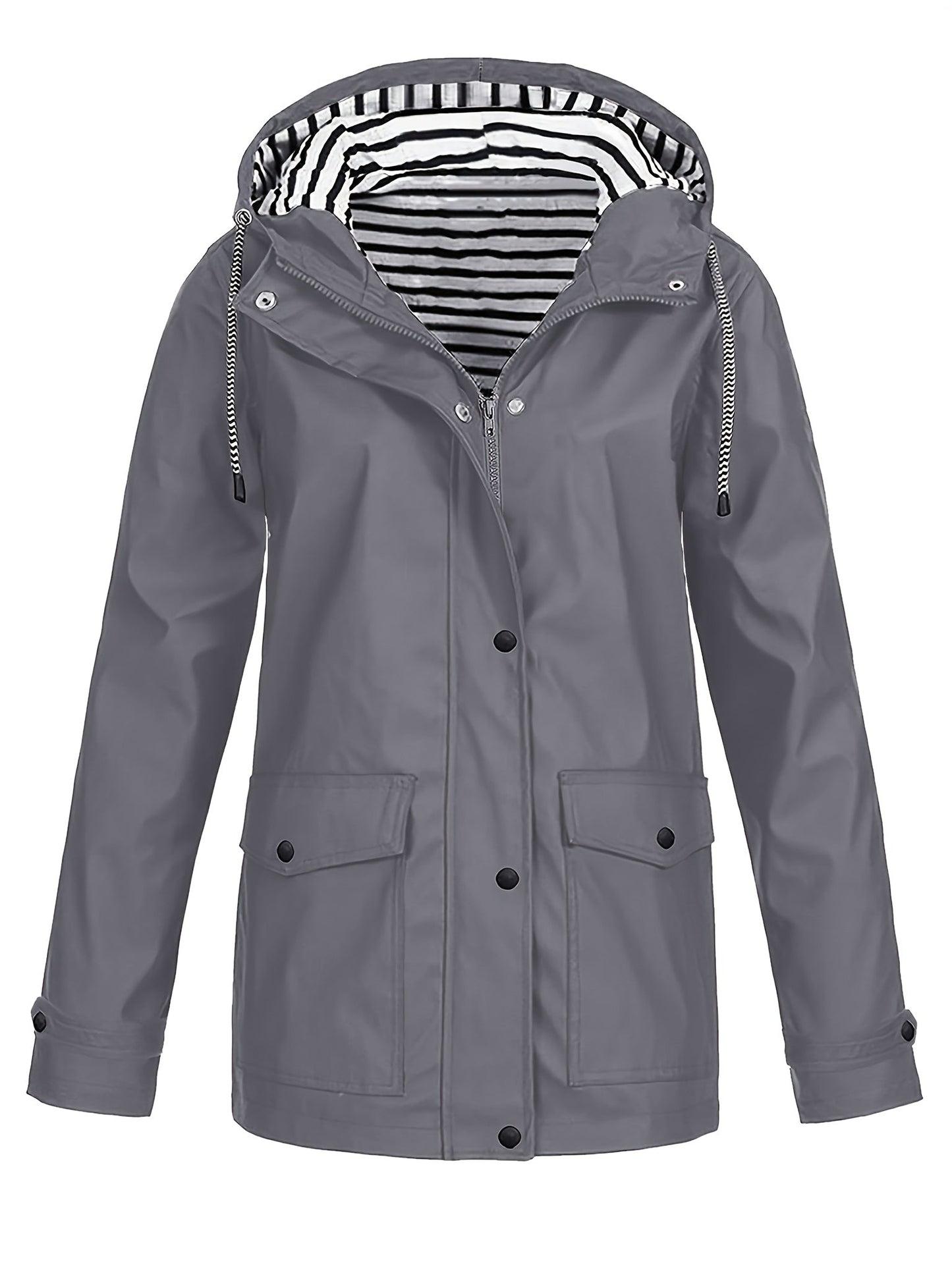 Veste longue à capuche rayée coupe vent femmes du 0XL au 5XL