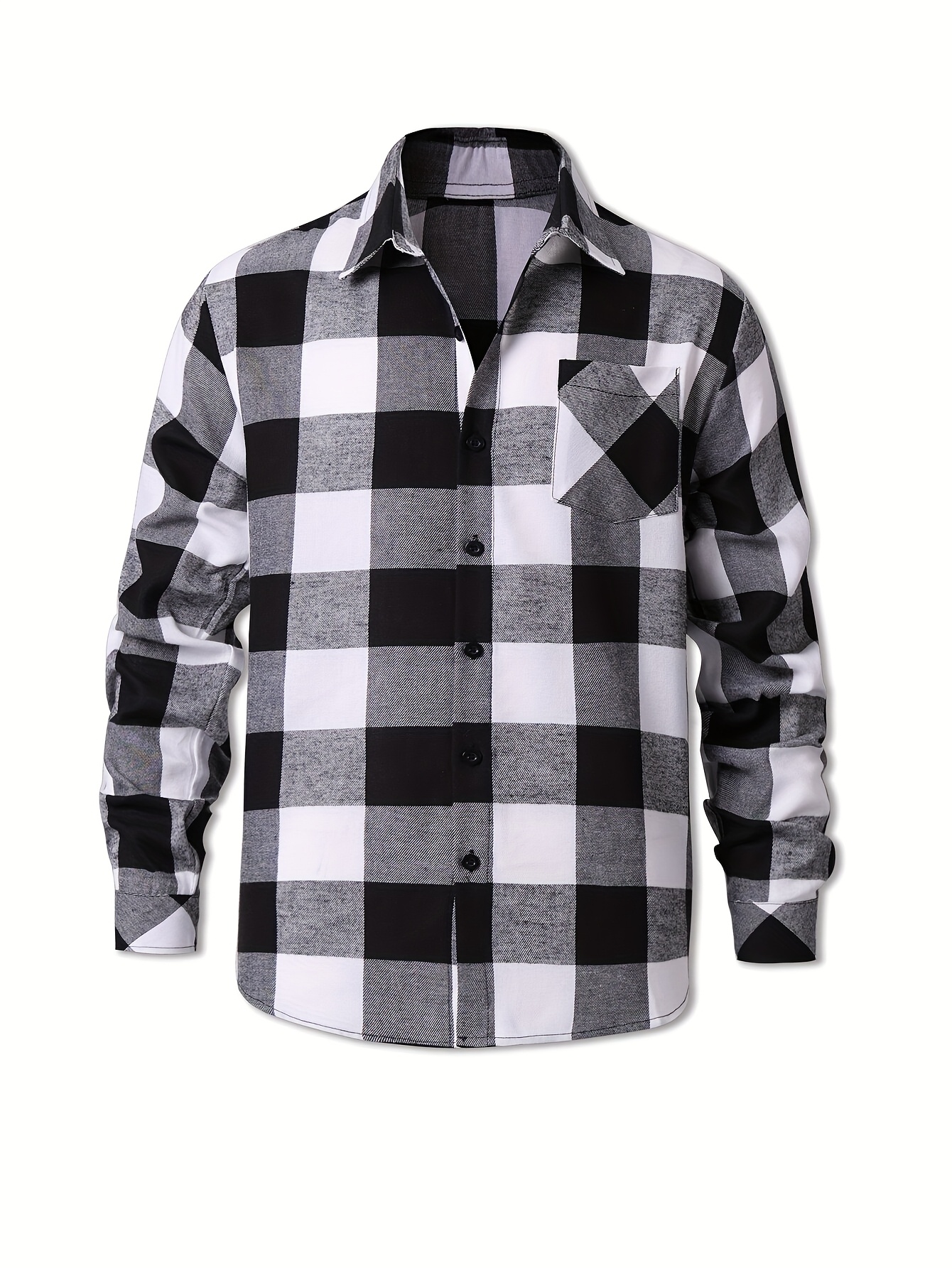 Chemise à manches longues à carreaux noir et blanc avec col à revers du M au 3XL