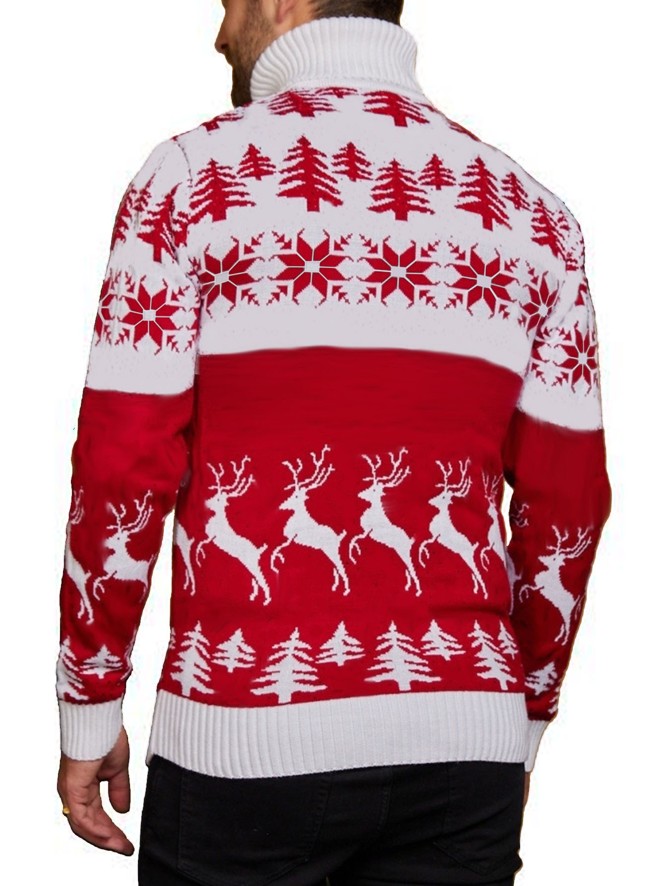 Pull de noël rouge et blanc avec motif de rennes et de flocons du S au 2XL