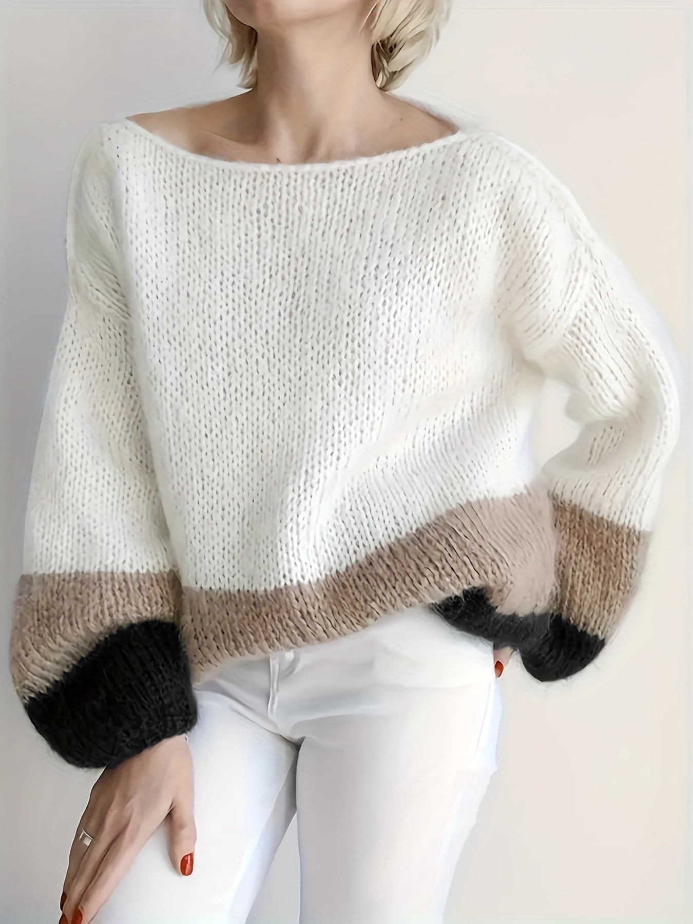 Pull ample à rayures col rond grande taille du XL au 5 XL